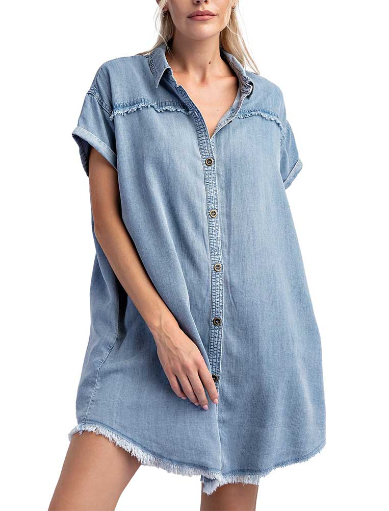Easel Washed Denim Tiered Dress