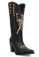 • Unleash your mischievous side in these deck-inspired Joker boots that proves fashion is the ultimate game of chance, and you're holding the winning hand