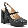 • Approximately 1 inch platform with a 3 3/4 inch chunky flared heel