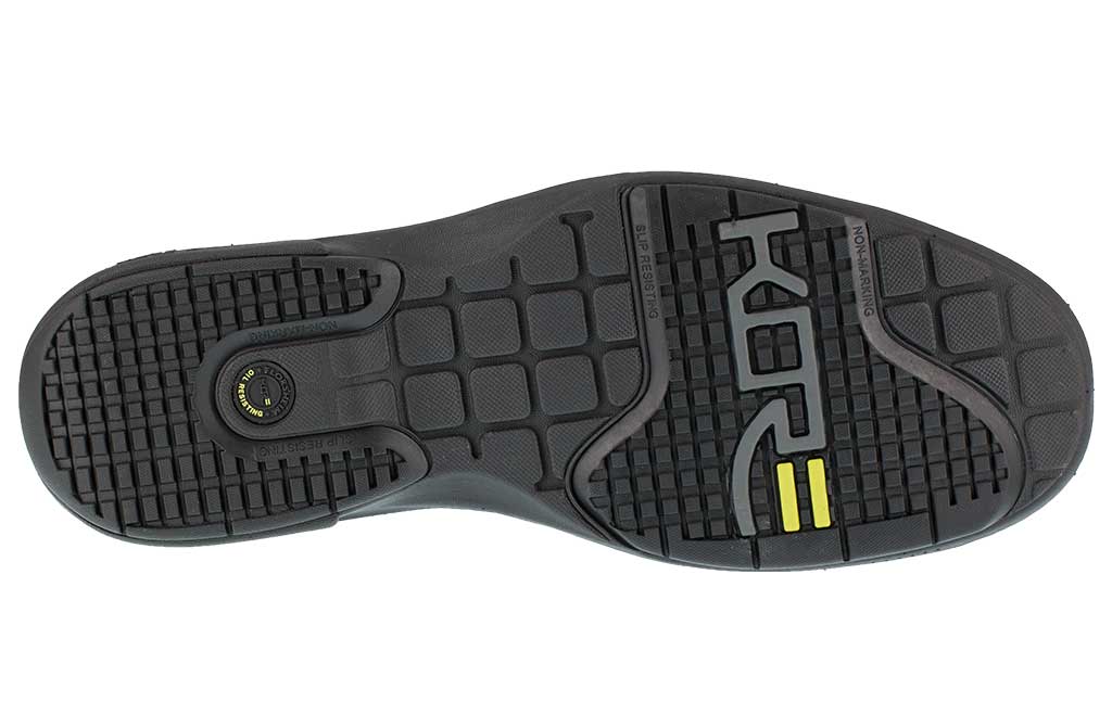 - KORE dual density outsole with slip-resistant rubber heel and forefoot outsole pads